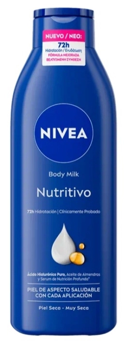 La combinación única de hidratantes que existen de forma natural en la piel, de lípidos que retienen la hidratación y de aceites nutritivos consigue ligar y retener el agua en la piel, evitando así que la hidratación pueda evaporarse fácilmente. La piel queda protegida de la deshidratación, ya que se reduce la pérdida de agua y aumenta el nivel de hidratación de la piel. Los métodos de ensayo más recientes han demostrado que esta combinación de ingredientes de alta calidad presentes en esta loción de NIVEA, logran penetrar profundamente en la piel, reteniendo el agua en su interior y proporcionando una hidratación intensiva durante 72 horas. Formato 250 ml. Nuevo envase mejorado con menos plástico que antes / 50% de envase de plástico reciclado (sin tapón).