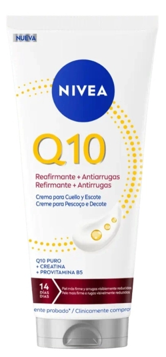 Su fórmula con Q10 puro, creatina y provitamina B5 está especialmente desarrollada para la piel delicada del cuello y escote. Resultados visibles en días: en sólo 7 días: 10 de cada 10 mujeres notan la piel más suave y tersa* y en sólo 14 días: reduce la apariencia de líneas finas y arrugas. Con el uso regular mejora la elasticidad de la piel y aporta 72 horas de hidratación en una sola aplicación. Compatibilidad con la piel dermatológicamente probada.