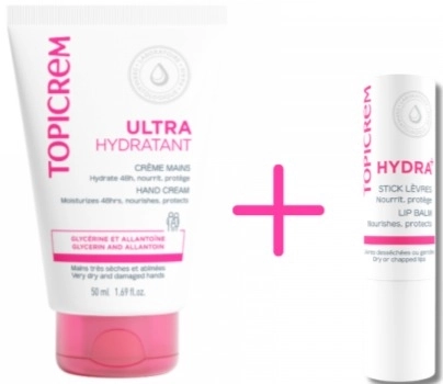 PACK UH Crema Manos Ultra-Hidratante, 50 + HYDRA+ Bálsamo Labial Ultra-Hidratante, 4 g. - Topicrem" se puede describir como un dúo diseñado para una hidratación intensiva. Incluye una crema de manos ultra-hidratante (50ml) y un bálsamo labial ultra-hidratante (4g), ambos formulados para proporcionar una hidratación profunda y proteger la piel y los labios de la sequedad. Ideal para el uso diario, este set garantiza manos y labios suaves y flexibles.
